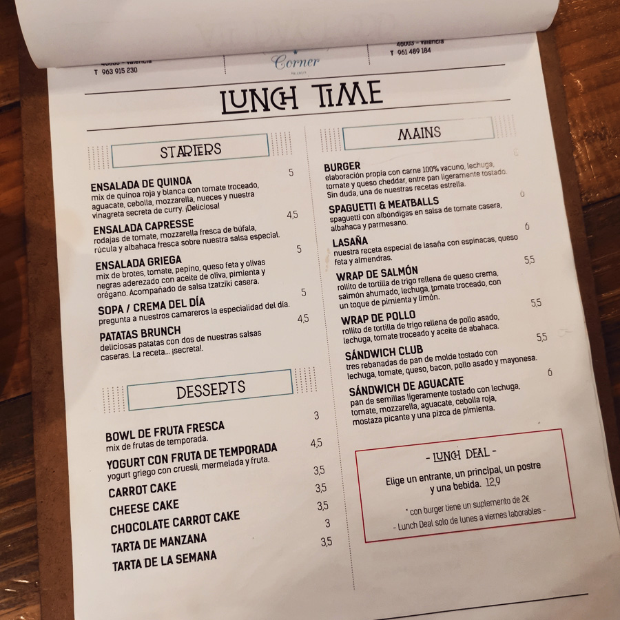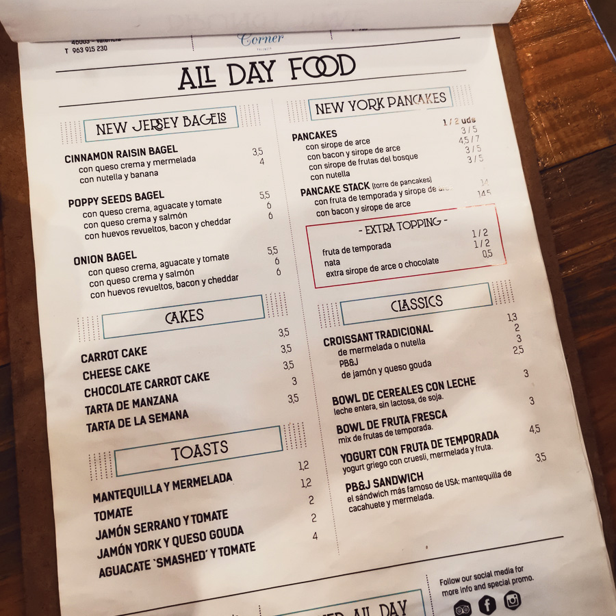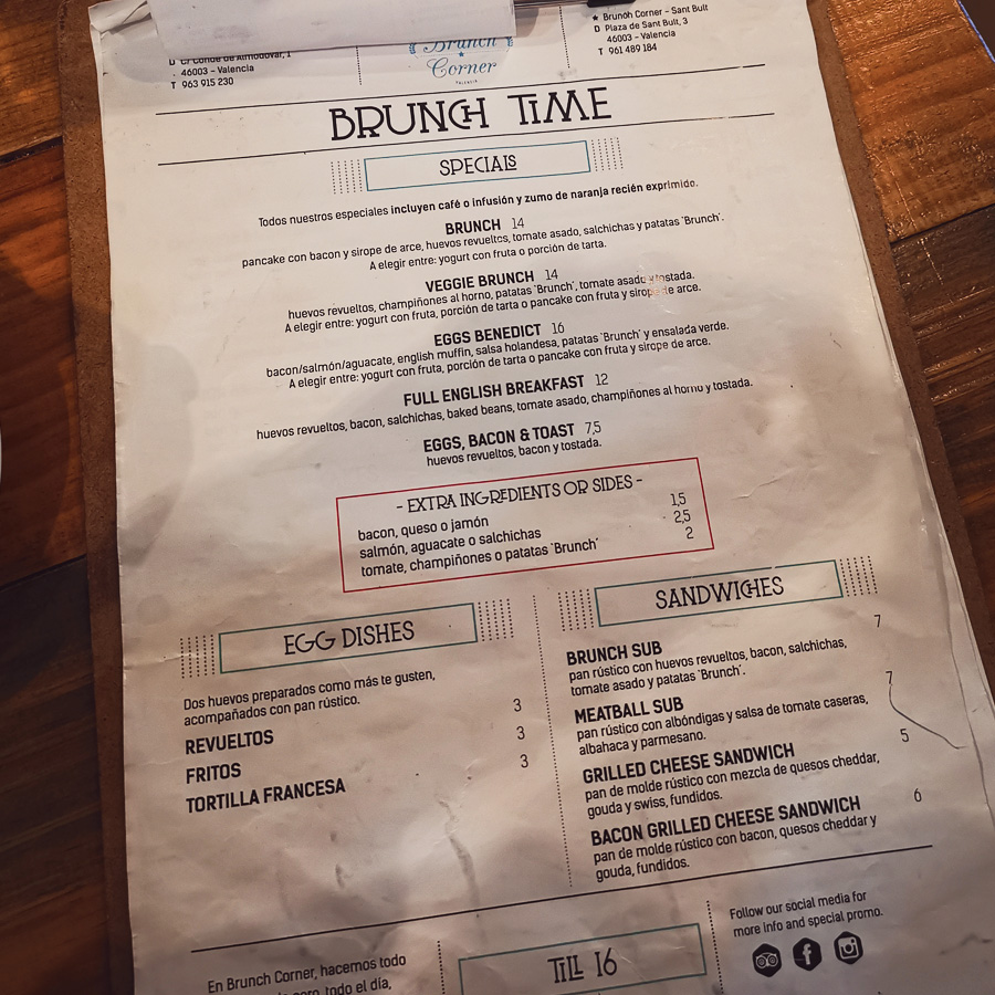 Dabei kommt mir die Idee ein Reisetagebuch zu schreiben, in dem ich das Jahr über festhalten will, was ich erlebt habe, welche Eindrücke ich gesammelt habe und was mir besonders gut gefallen hat und sammle dafür erste Ideen in einem kleinen süßen Café um die Ecke am Plaza de la Virgen. Hier im „Brunch Corner“ gibt es alles was mein süßes Herzchen höherschlagen lässt. Doch zu später Stunde verzichte ich auf Süßes und gönne mir nur eine Tasse Cappuccino. Als ich Peter anschließend von der Idee des Reisetagebuchs berichte, ist er Feuer und Flamme und legt direkt los, um meinen Reiseblog in die Wege zu leiten.